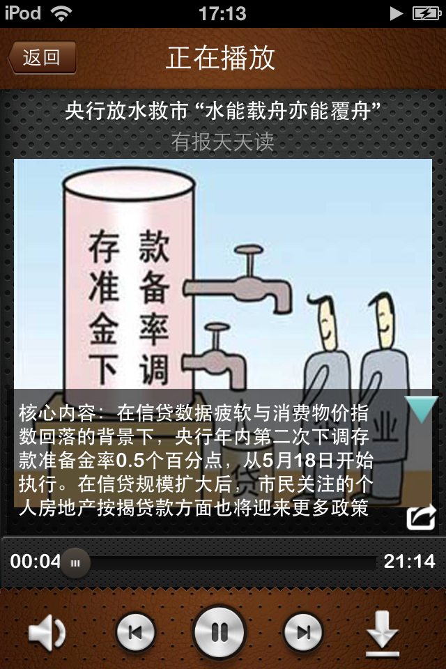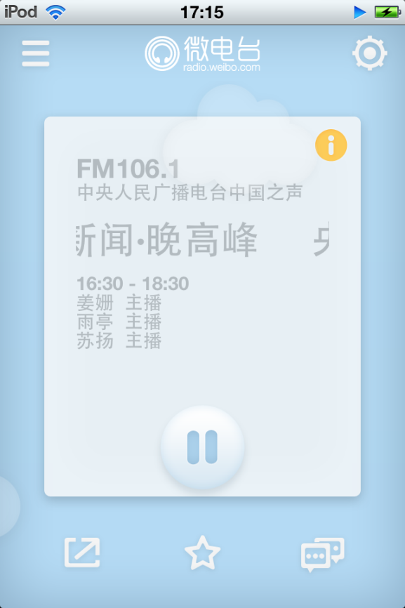轻度社交,对于用户喜爱的内容和节目,可以通过产品内置的“一键分享”功能,将音频内容转发到微博、人人等,与朋友分享讨论。