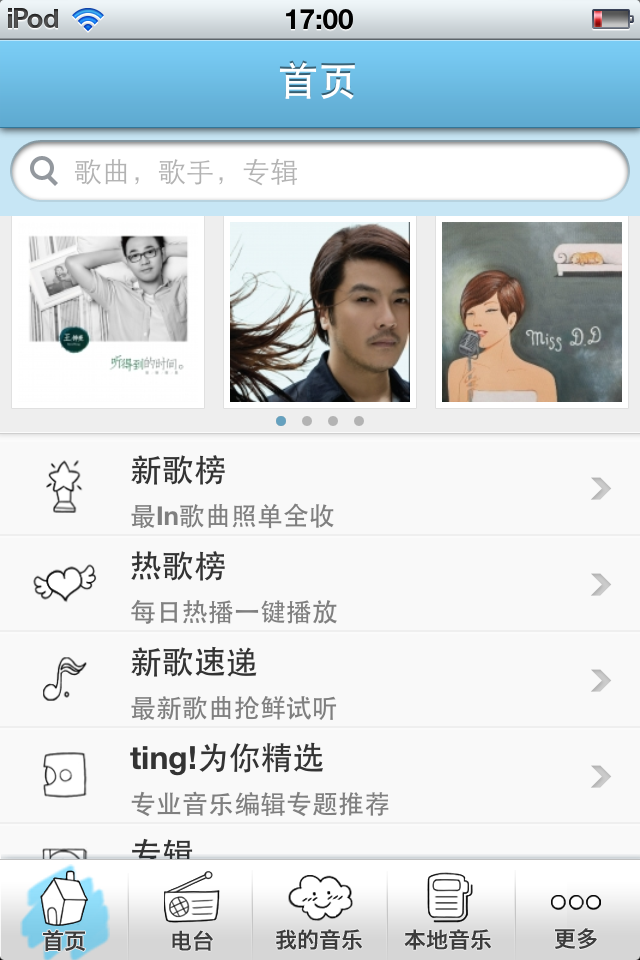 百度ting:设计简洁、大方,清新的蓝白界面;充满年轻活泼的流行感。